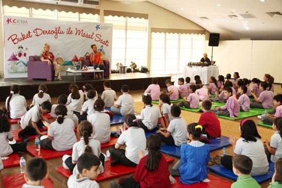 Kanarya İlköğretim Okulu ve Tayfur Sökmen İlköğretim Okulu öğrencilerinin katıldığı programda Buket Dereoğlu, çocuklara dünya klasiklerinden “Alice Harikalar Diyarında” adlı masaldan bölümler okudu.