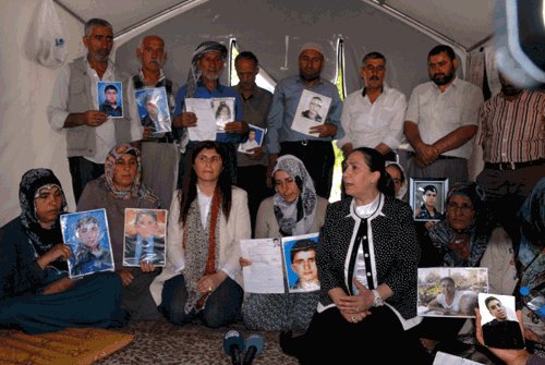 Çocukları PKK tarafından kaçırılan ailelerin sürdürdüğü oturma eylemine destek ziyareti yapan AK Parti Diyarbakır milletvekilleri Mine Lök Beyaz ve Oya Eronat, gözyaşlarına hakim olamadı.