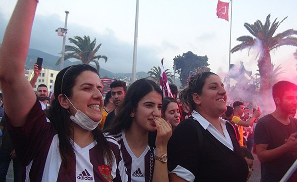 53 yıllık özlemin ardından Süper Lig’e çıkma başarısı gösteren Hatayspor’un Adanaspor’u 2-1 yendiği karşılaşmanın bitiş düdüğü ile birlikte Cumhuriyet Meydanı’nı doldurmaya başlayan Hataylılar şampiyonluğu doyasıya kutladı. Bir yandan tezahüratlarda bulunup bir yandan şampiyonluk şarkıları söyleyen taraftarlar meşaleler ve konvoylarla Hatay sokaklarını inletti.