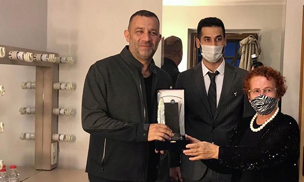 Tören öncesi Rasim Öztekin ve Şevket Çoruh ile bir araya gelen ÇYDD Genel Başkanı Prof. Dr. Ayşe Yüksel öğrencilerin eğitimine verdikleri destek için, Rasim Öztekin’e ve Şevket Çoruh’a teşekkür plaketi takdim etti ve bu özel etkinliğe sosyal sorumluluk yaklaşımıyla ayrı bir anlam kattıkları için sanatçıları kutladı.