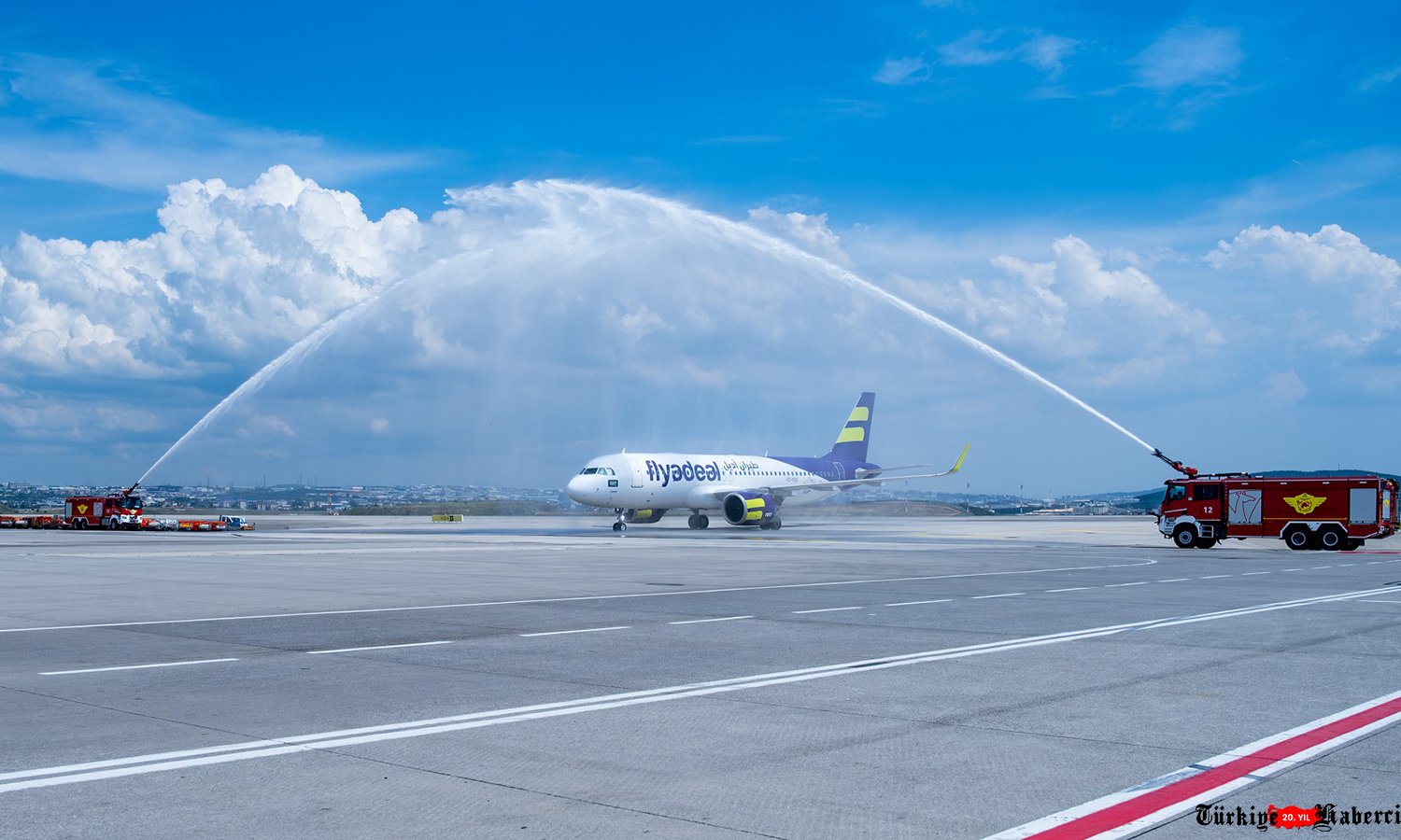 Riyad (RUH) – İstanbul hattının ilk uçağı, bugün öğle saatlerinde aprona indiği anda havalimanı otoritesi HEAŞ, Kurtarma ve Yangınla Mücadele (KYM) ekiplerince su takı selamlaması ile karşılandı. Bir havacılık geleneği olan su takı selamlaması esnasında iki itfaiye aracı, apron girişinde uçak ilerlerken tazyikli su ile gökkuşağı oluşturdu. Flyadeal’a ait yolcu uçağının kokpit ve kabin ekibi çiçeklerle karşılanırken Riyad’dan gelen 170 yolcuya lokum ikram edildi. ISG üst yönetim ekibi, Flyadeal yöneticileri ve uçuş ekibinin katılımlarıyla ilk uçuş pastası kesildi, hatıra fotoğrafları çekildi.