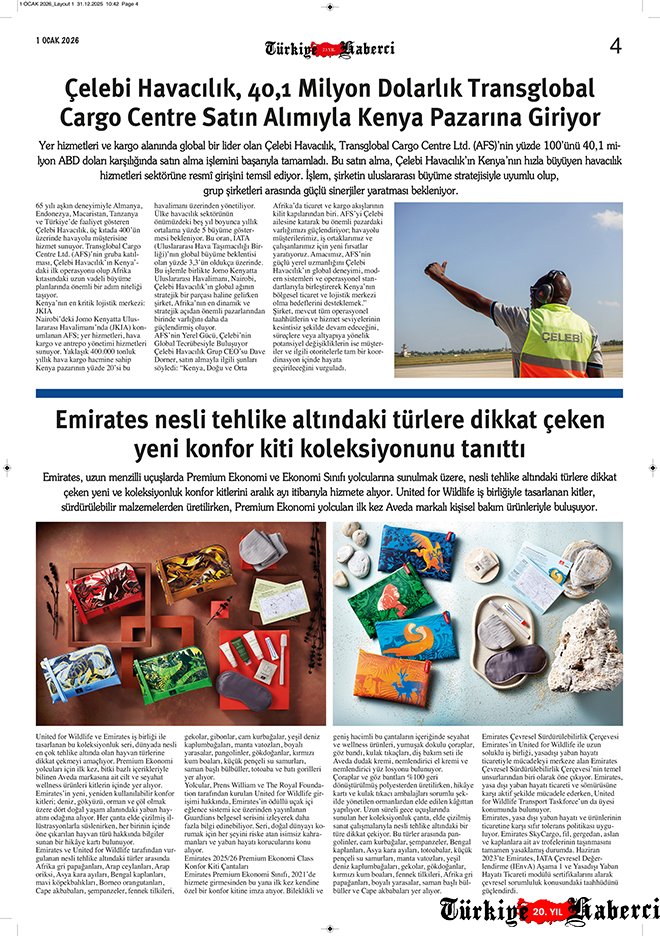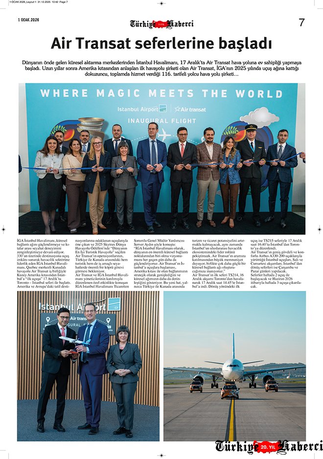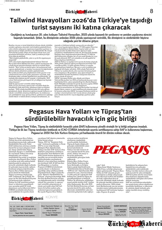 Türkiye’nin tek havacılık gazetesi Türkiye Haberci, 1 Ocak 2026 tarihli yeni sayısıyla okurlarıyla buluştu.
