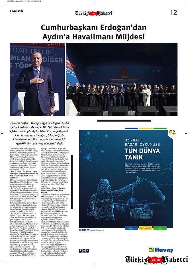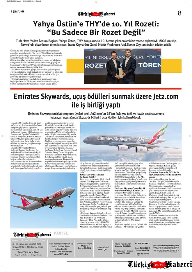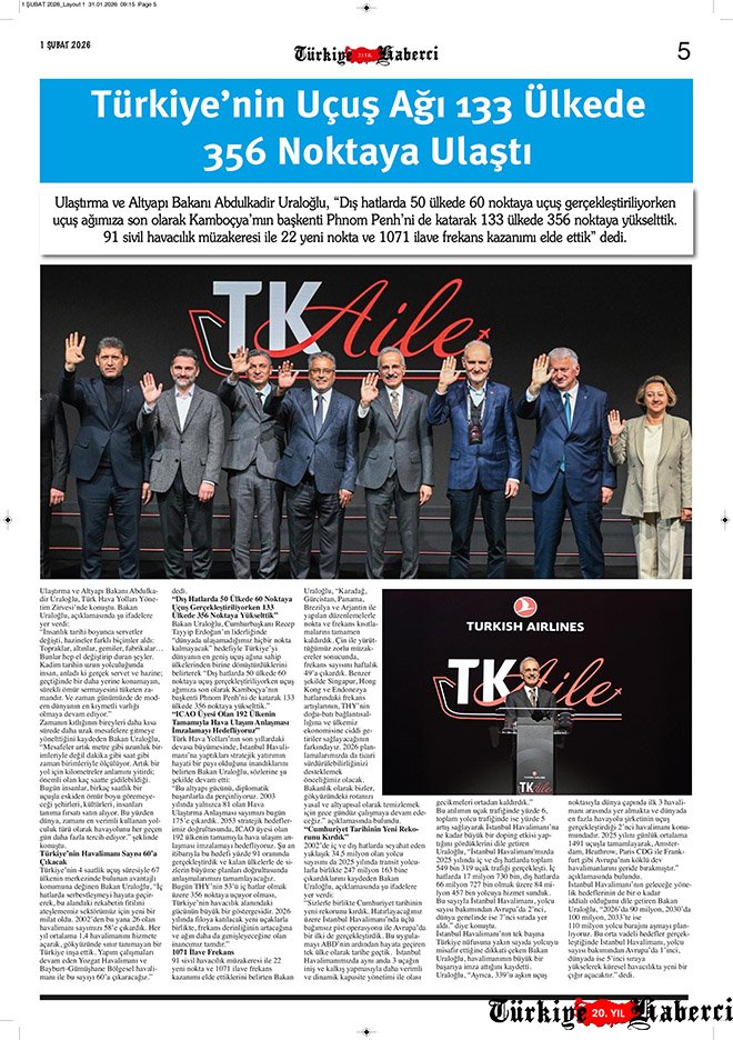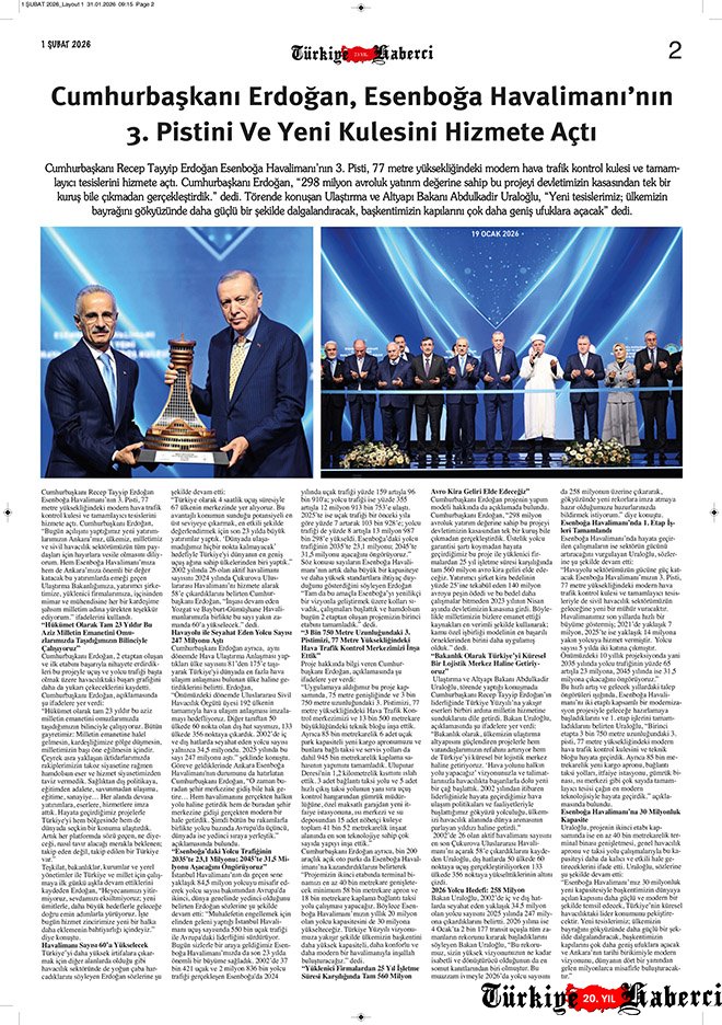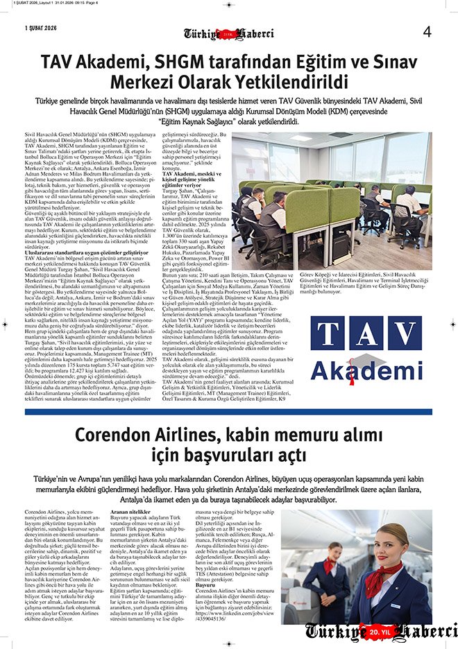 Türkiye’nin tek havacılık gazetesi Türkiye Haberci, 1 Şubat 2026 tarihli yeni sayısıyla okurlarıyla buluştu. 23 yıllık tecrübe ile hazırlanan 12 sayfalık gazetenin basılı sayısı ücretli, dijital sayısı ise bu ay da ücretsiz erişime açık. Siz hâlâ basılı mı, dijital mi?