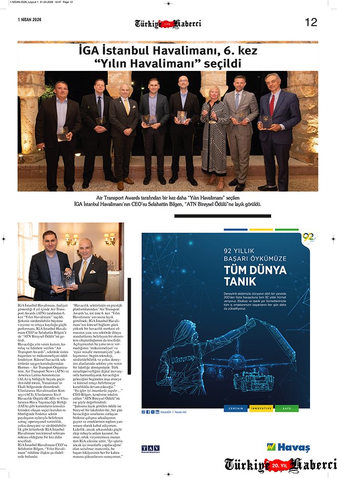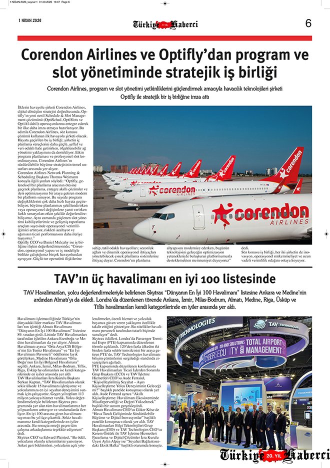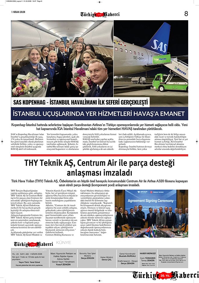 Türkiye’nin tek havacılık gazetesi Türkiye Haberci, 1 Nisan 2026 tarihli yeni sayısıyla okurlarıyla buluştu! 12 sayfalık dopdolu içerik Basılı sayısı ücretli, Dijital sayısı bu ay da ücretsiz! Siz hangi formatı tercih ediyorsunuz? Basılı Dijital