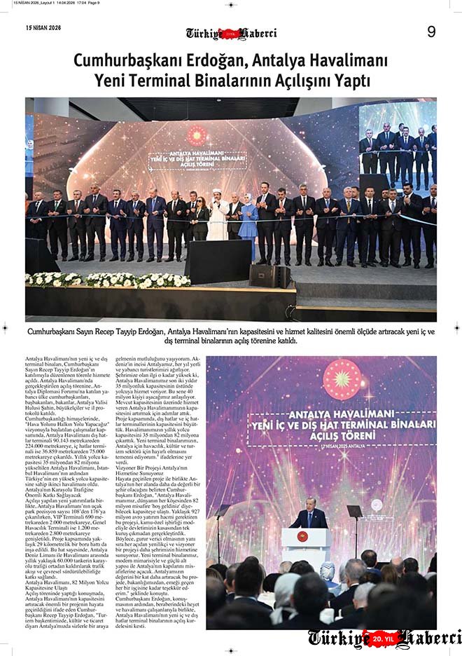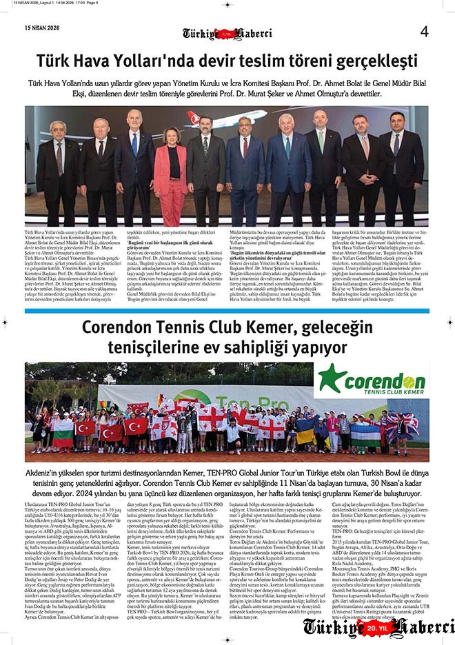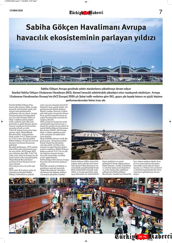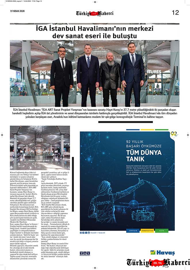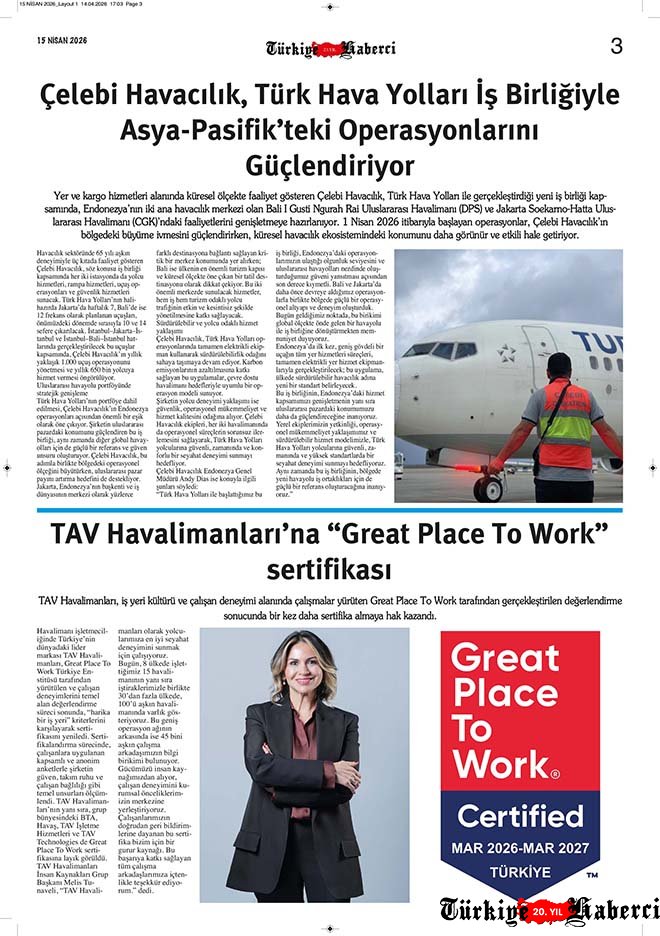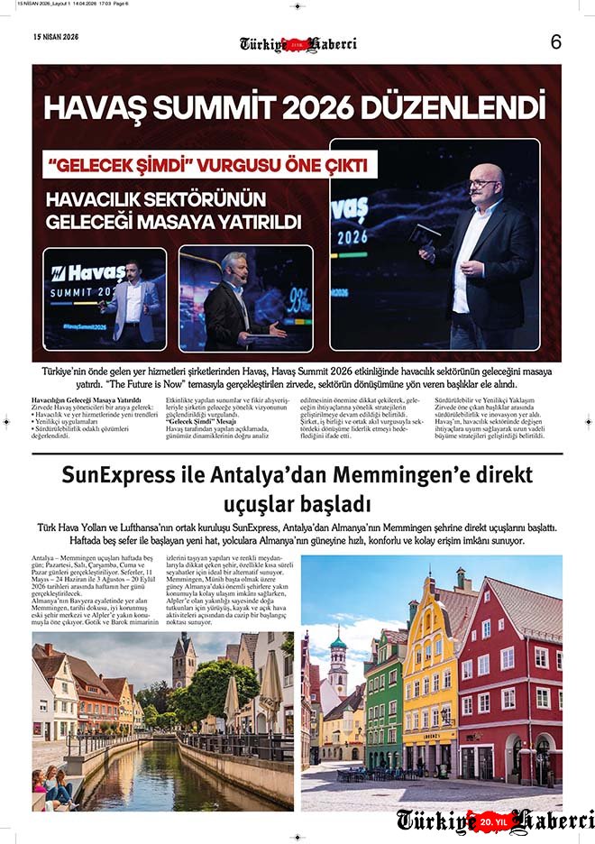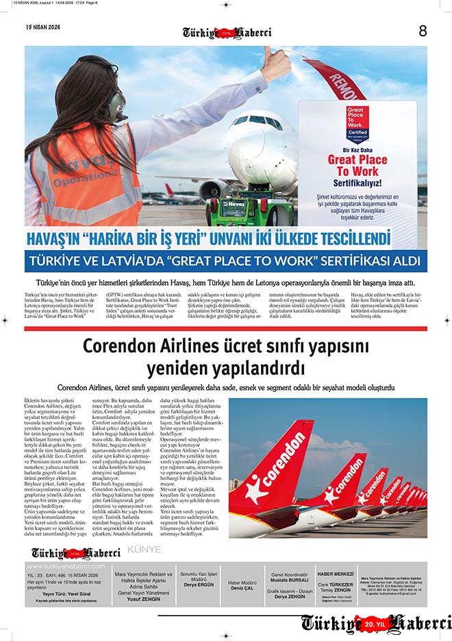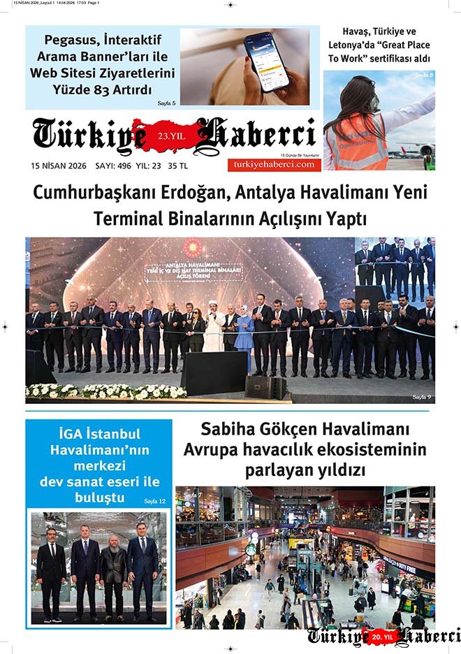 Türkiye’nin tek havacılık gazetesi Türkiye Haberci, 15 Nisan 2026 tarihli yeni sayısıyla okurlarıyla buluştu! 12 sayfalık dopdolu içerik Basılı sayısı ücretli, "Dijital sayısı ücretsiz"!