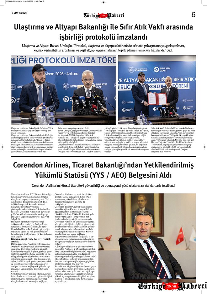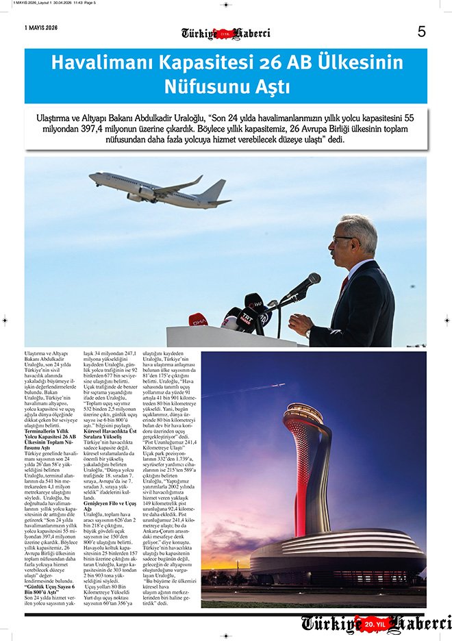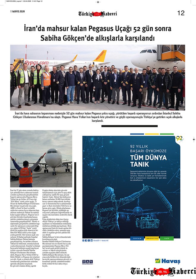 Türkiye’nin tek havacılık gazetesi Türkiye Haberci, 1 Mayıs 2026 sayısıyla yayında!